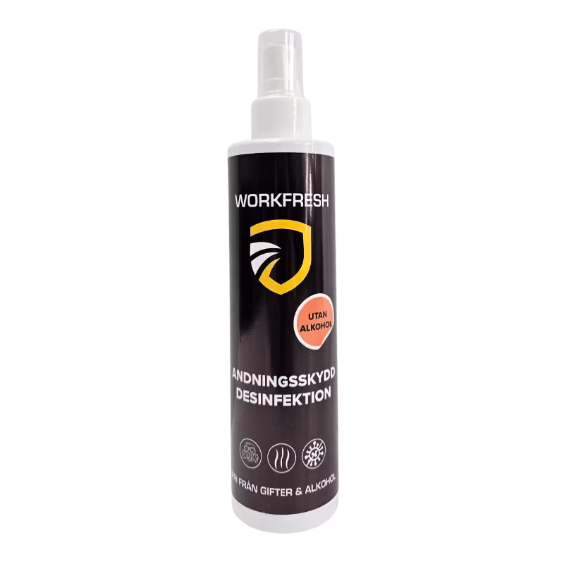 Ett färdigblandat, användarvänligt desinfektionsmedel. pH värdet i produkten ligger på 6,5 – 6,7. Workfresh Andningsskydd är enkelt och säkert att använda.