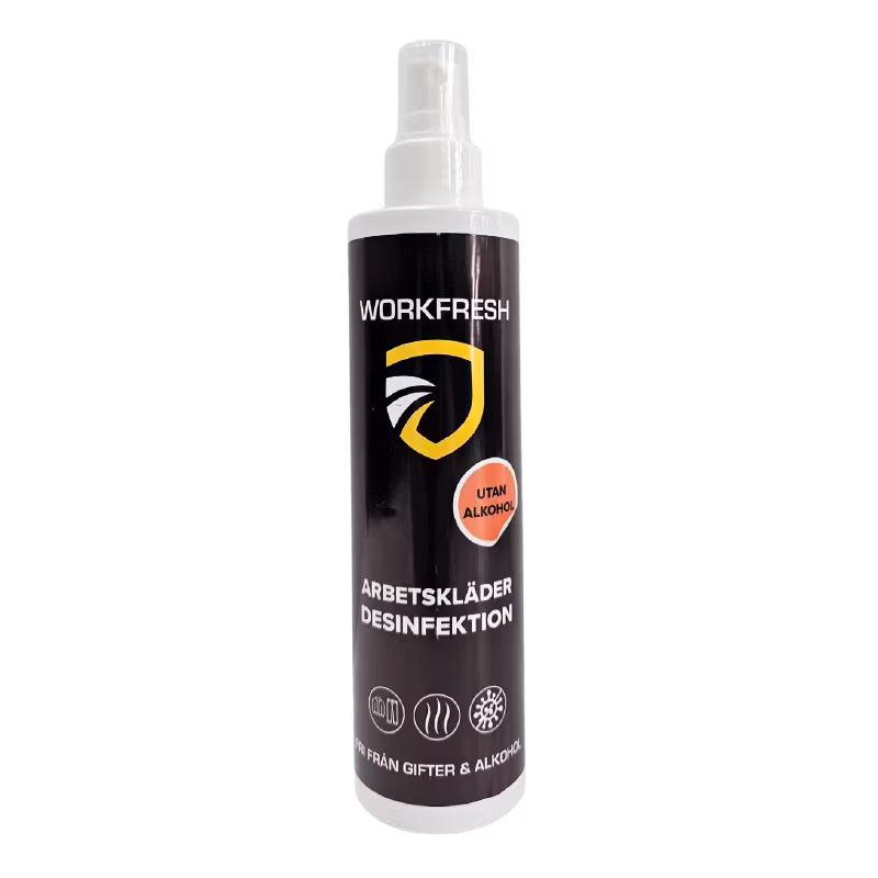 Ett färdigblandat, användarvänligt desinfektionsmedel. pH värdet i produkten ligger på 6,5 – 6,7. Workfresh Arbetskläder är enkelt och säkert att använda.