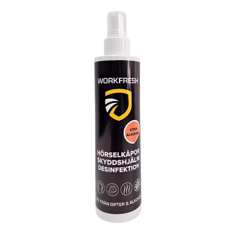 Ett färdigblandat, användarvänligt desinfektionsmedel. pH värdet i produkten ligger på 6,5 – 6,7. Workfresh Hörselkåpor & Skyddshjälm är enkelt och säkert att använda.
